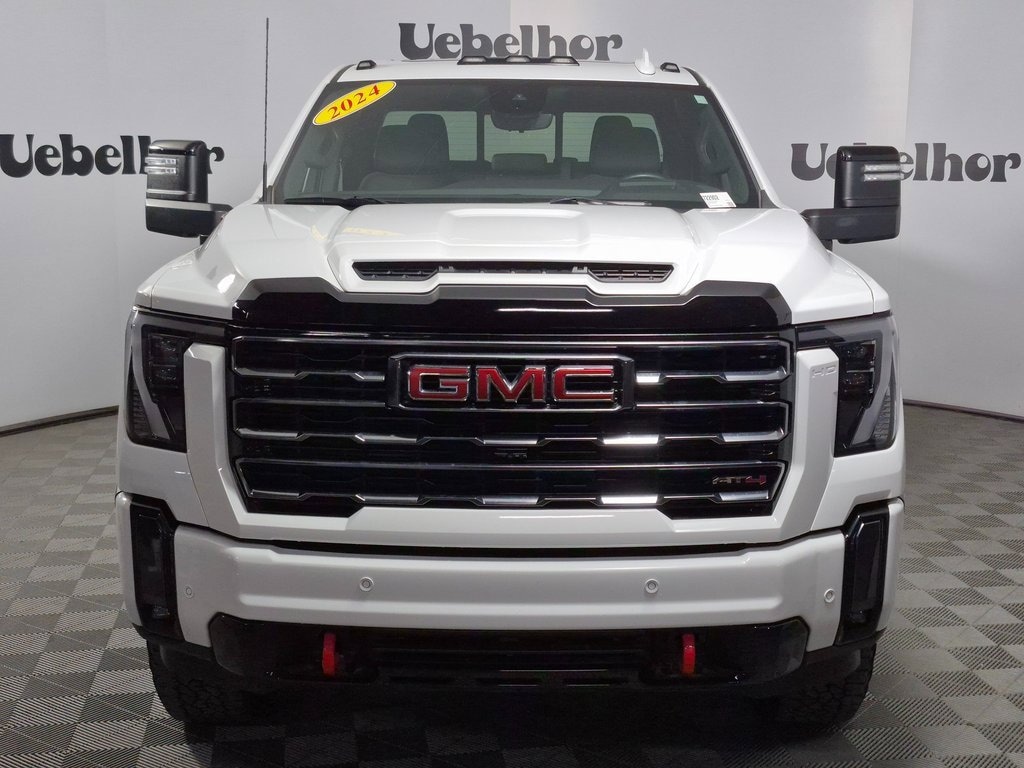 Command the road and the jobsite in this 2024 GMC Sierra 2500HD AT4 (VIN: 1GT49PE73RF192157), available now at Uebelhor & Sons in Jasper, Indiana. Built for serious capability, this heavy-duty truck features a powerful 6.6L V8 engine paired with a 10-speed automatic transmission and advanced 4WD with off-road suspension, giving you confident towing and trail-ready performance. With low mileage and priced competitively within the AT4 market range, it stands out among cars for sale in Jasper IN. Inside, enjoy premium leather seating, a large touchscreen with Google built-in, Bose premium audio, advanced trailering technology, and GMC Pro Safety Plus for added peace of mind. If you're searching for a 2024 GMC Sierra 2500HD AT4 Jasper IN car for sale from a trusted Indiana dealership, discover why were known as Where Customers Send Their Friends. Schedule your test drive today at Uebelhor & Sons in Jasper where customers send their friends!