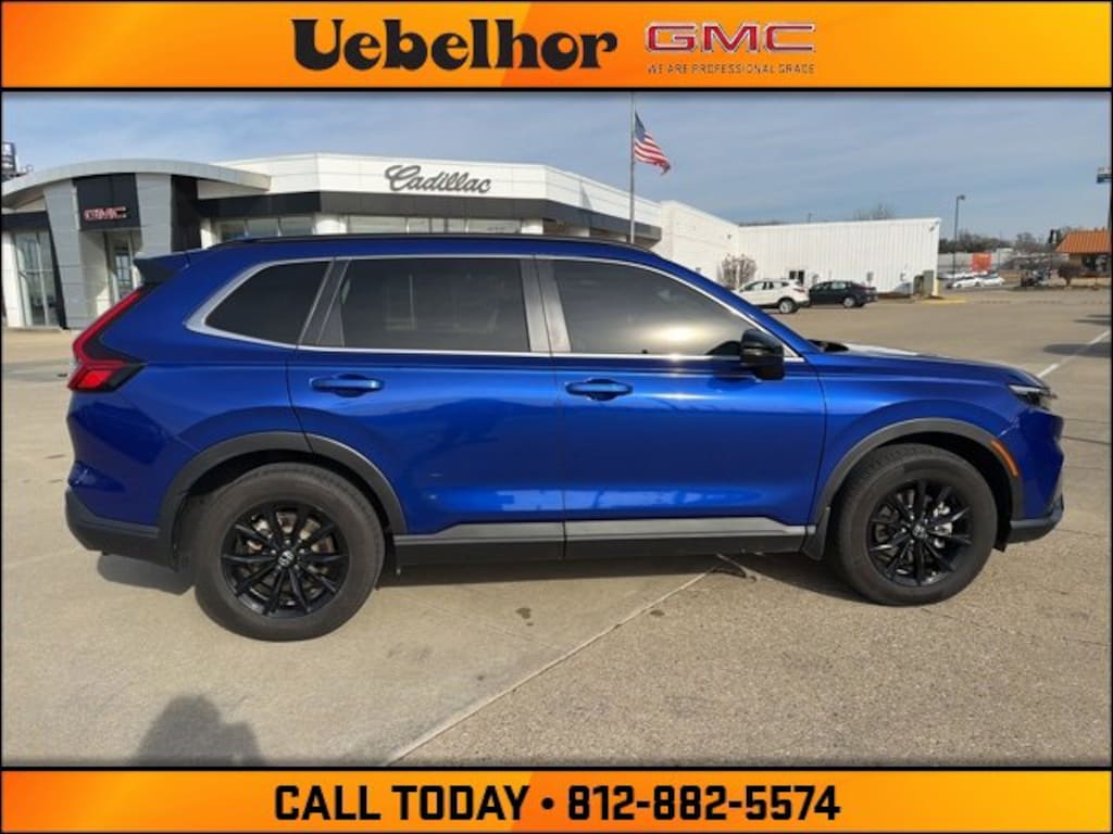 Discover smart efficiency and modern versatility with this Honda CR-V Hybrid Sport (VIN: 7FARS6H5XPE029641), now available at Uebelhor GMC Cadillac in Vincennes, Indiana. Powered by Hondas advanced hybrid powertrain paired with a smooth e-CVT, this CR-V Hybrid delivers impressive fuel efficiency without sacrificing performance, making it an excellent choice for daily commuting and weekend adventures. The Sport trim adds bold styling touches, comfortable seating, and a refined interior with a user-friendly touchscreen, Apple CarPlay and Android Auto, and advanced safety features through Honda Sensing. With a spacious cabin, flexible cargo area, and confident handling, this CR-V stands out among cars for sale in Vincennes IN. Shop with confidence at Uebelhor GMC Cadillac, a trusted Indiana dealership proudly known as Where Customers Send Their Friends.