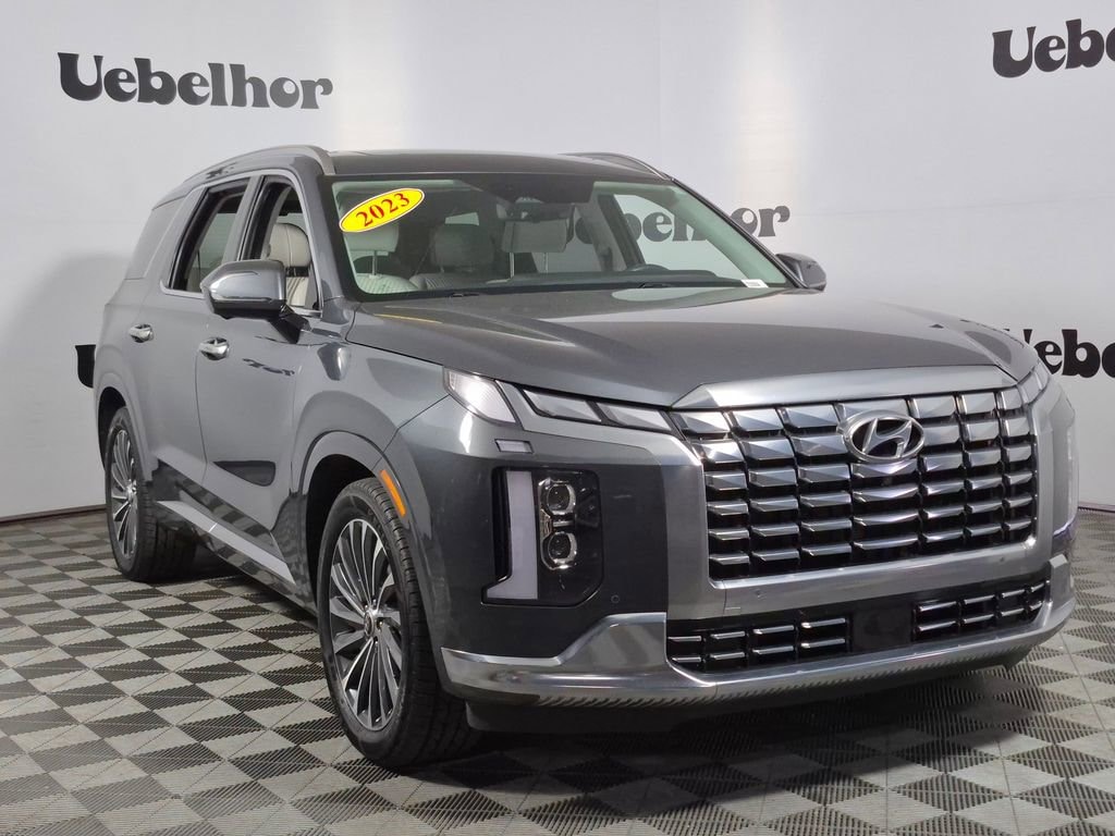 ***3RD ROW SEATING***, ***BACK UP CAMERA***, ***BLUETOOTH***, ***HEATED SEATS***, ***HEATED SECOND ROW***, ***LOCAL TRADE***, ***NAVIGATION***, ***NON SMOKER***, ***ONE OWNER***, ***REMOTE START***, ***SUNROOF***. Steel Graphite 2023 Hyundai Palisade Calligraphy AWD 8-Speed Automatic with SHIFTRONIC V6