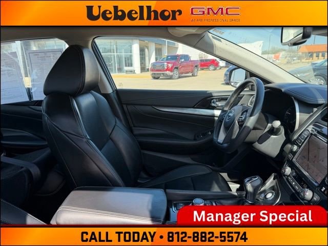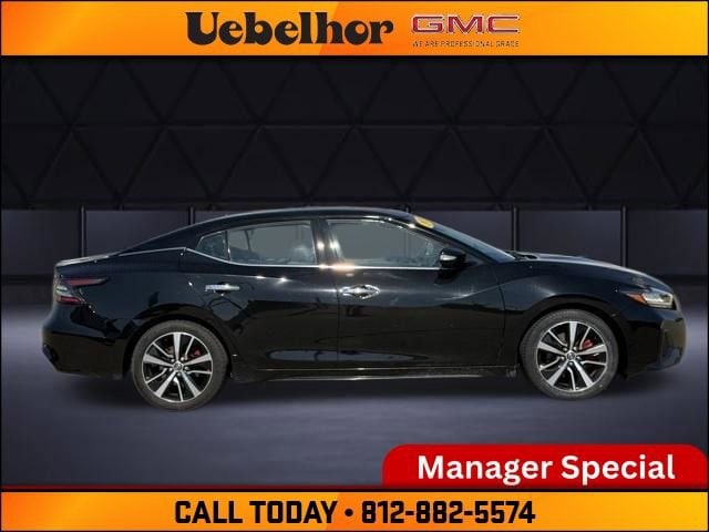Elevate your daily drive with this 2023 Nissan Maxima SV, now available at Uebelhor GMC in Vincennes. Dressed in a sleek Super Black exterior with a Charcoal leather interior, this sport sedan offers a perfect blend of high-end luxury and exhilarating performance for drivers in Evansville and Terre Haute. Whether you are navigating the city streets of the Tri-State or cruising the open highway, the Maxima's legendary 4-Door Sports Car DNA ensures every trip is an experience.Premium Features & Key Specs:3.5L DOHC 24-Valve V6 Engine: Delivers a potent 300 horsepower and 261 lb-ft of torque.Xtronic CVT with Manual Shift Mode: Includes Drive Mode Selector (Normal & Sport) for a tailored driving experience.Fuel Efficiency: Achieve up to 30 MPG highway, perfect for the commute from Owensboro or Terre Haute.Luxury Interior: Leather-appointed heated front seats, 8-way power drivers seat with lumbar support, and dual-zone automatic temperature control.Advanced Tech: 8-inch color display with Apple CarPlay and Android Auto integration, plus Nissan Door to Door Navigation.Safety Shield 360: Standard Automatic Emergency Braking with Pedestrian Detection, Blind Spot Warning, Rear Cross Traffic Alert, and Lane Departure Warning.Convenience: Remote Engine Start with Intelligent Climate Control and Nissan Intelligent Key with Push Button Ignition.Exterior Styling: 18-inch Machined Aluminum Alloy Wheels and LED Signature Daytime Running Lights for a bold presence.The Uebelhor AdvantageFamily-owned and serving the community since 1929, Uebelhor & Sons is dedicated to a transparent, customer-first buying process. We believe in honest pricing without the hidden costs found elsewhere. Uebelhor GMC in Vincennes charges NO dealer fees or doc fees. The price you see is the price you pay. For our neighbors in the Tri-State area, our No Fee policy ensures your drive to Vincennes is well worth the time.Visit Us TodayFind this 2023 Nissan Maxima SV at 626 Kimmell RD, Vincennes, IN 47591. Call 812-291-1621 to confirm availability and schedule your test drive. Experience the Uebelhor difference, where customers send their friends!
